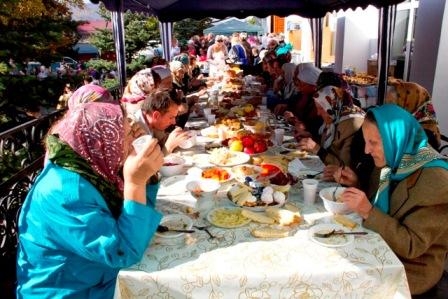 После целования креста все желающие смогли разделить совместную праздничную братскую трапезу. Также во дворе храма был предложен концерт,в котором приняли участие воскресная школа «Радуга», кукольный театр «Чудо», молодежная группа «2еРИ», Анна Новицкая, фольклерный украинский ансамбль «Червоно Руте», вокальный ансамбль союза казаков Смеричья «Верный» . Радость этого праздника разделили с нами более 400 прихожан и гостей нашего храма.