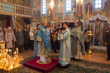 Сегодня 15 февраля в день Сретения Господа нашего Иисуса Христа службу в нашем храме возглавил преосвященный Геннадий епископ Каскеленский. Молитвенное общение с владыкой Геннадием разделили клирики и прихожане нашего храма. После Литургии прошло славление праздника перед иконой Сретения Господня. Затем епископ Геннадий обратился к собравшимся с пастырским приветственным словом, в котором поздравил всех прихожан с праздником и рассказал сюжет и о значении этого праздника.