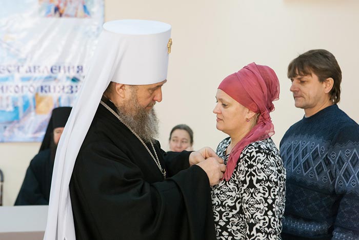 Во внимание к трудам по духовно-нравственному воспитанию детей и служению традиционным православным семейным ценностям митрополит Александр вручил родителям медаль «Алгыс» («Благодарность») и медаль святых мучениц Веры, Надежды, Любови и Софии.