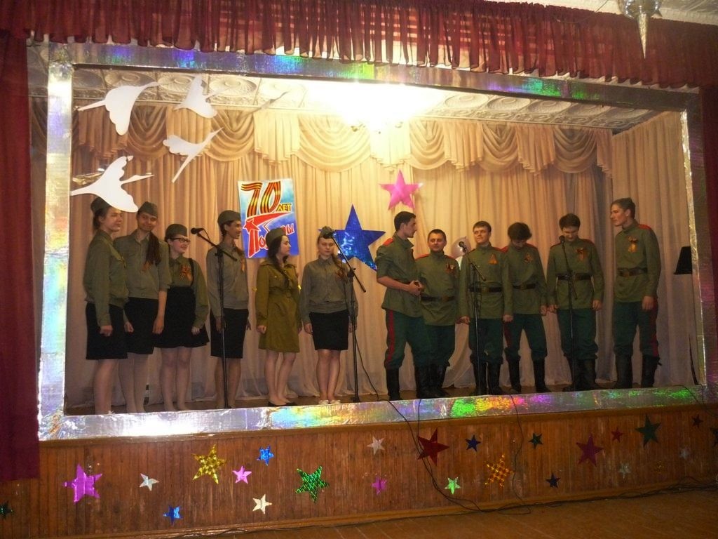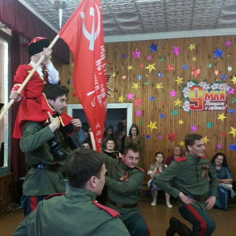 Затем выступающие представили многочисленным зрителям театрализованное представление о тяжелом военном времени, а также известные патриотические песни и стихотворения.